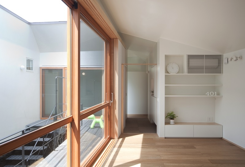 最後に外周を閉じた壁に風・光・眺めなどを考慮して慎重に開口を配置した。