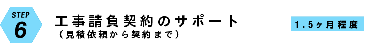 施工業者との「工事請負契約」の締結にいたるまでのサポートをします。具体的には複数の施工業者に説明をして見積を提出してもらい、各社の内容チェック・分析し希望金額になるようにコスト調整を行います。会社状況や仕事の質、見積りの金額などを考慮にいれ施工業者を選定のアドバイスをします。