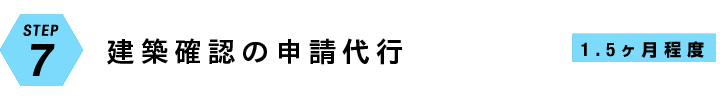 見積および計画案が確定した段階で行政または民間の確認申請期間に「建築確認」を申請します。許可が下りるのに1.5ヶ月程度かかり、設計内容によりさらに長くかかることもあります。